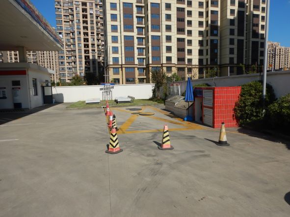 地理位置及周邊環(huán)境: 嘉定青崗加油站位于上海市嘉定區(qū)菊園新區(qū)滬宜公路4860號。站區(qū)東、西、北三側(cè)均為2.2米高的實體圍墻。 東:居民區(qū)(含固定停車位); 南:滬宜公路,隔路為架空電力線及空地; 西:居民區(qū)(含固定停車位)、架空電力線、變壓器; 北:居民區(qū)(含固定停車位)。 | |
